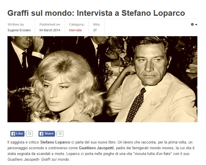 Esce oggi la mia intervista a Fascination Cinema. Il protagonista è sempre lui: Gualtiero Jacopetti – Graffi sul mondo, la prima biografia completa su uno dei personaggi più controversi del cinema internazionale. Un ritratto inedito – finanche intimo – di un cineasta innovativo e spregiudicato che annovera oggi tra i suoi fan – solo per citarne uno – un attore del calibro di Samuel L. Jackson… buona lettura!