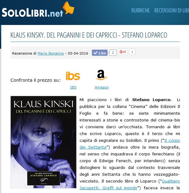 Klaus Kinski – Del Paganini e dei capricci. La recensione di SoloLibri.net (e Mario Bonanno che ringrazio)
