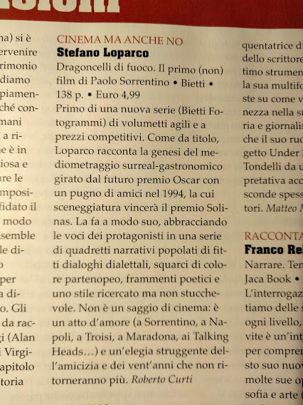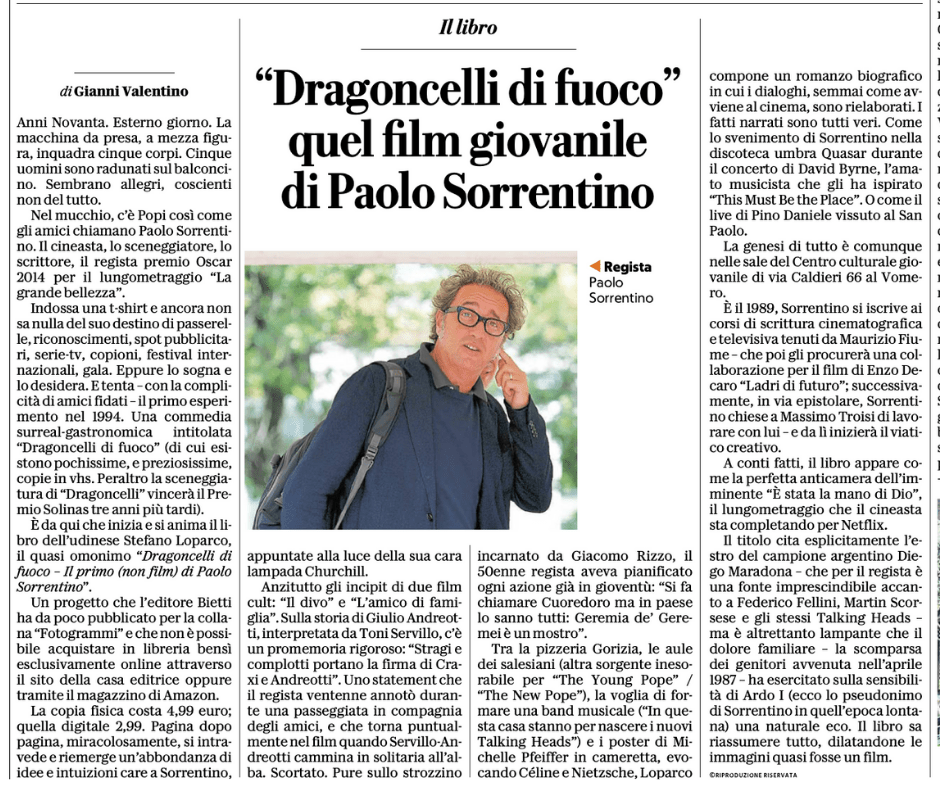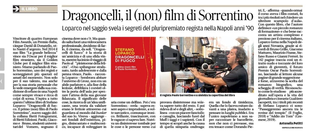 «Loparco scrive benissimo. Ma c’è di più. Dragoncelli di fuoco ha ritmo, belle metafore visive e uno stile che rende la lettura interessante, anche al netto del mondo sorrentiniano». Stefano Russo
