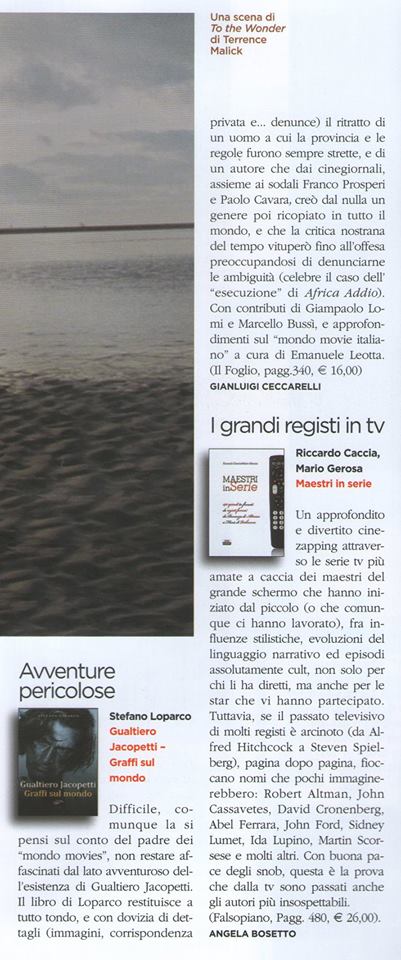 “Ma un libro così bello, dannato e controcorrente, sarebbe mai saltato fuori dal catalogo di una ‘major’? La domanda è pleonastica: lunga vita alle piccole ma battagliere Edizioni Il Foglio e al fiore all’occhiello della collana ‘Cinema’”.